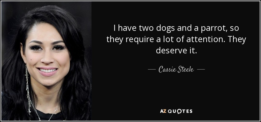 I have two dogs and a parrot, so they require a lot of attention. They deserve it.