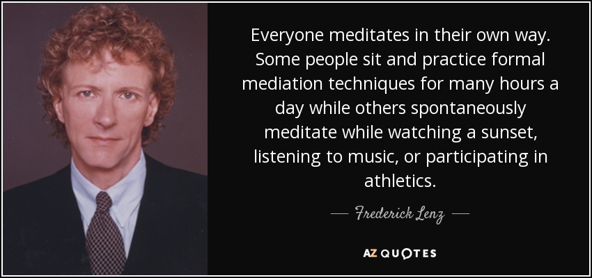 Everyone meditates in their own way. Some people sit and practice formal mediation techniques for many hours a day while others spontaneously meditate while watching a sunset, listening to music, or participating in athletics.