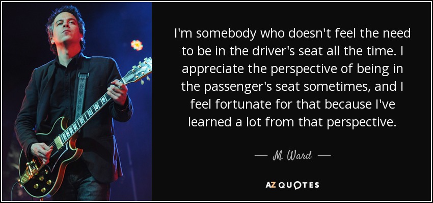 I'm somebody who doesn't feel the need to be in the driver's seat all the time. I appreciate the perspective of being in the passenger's seat sometimes, and I feel fortunate for that because I've learned a lot from that perspective.