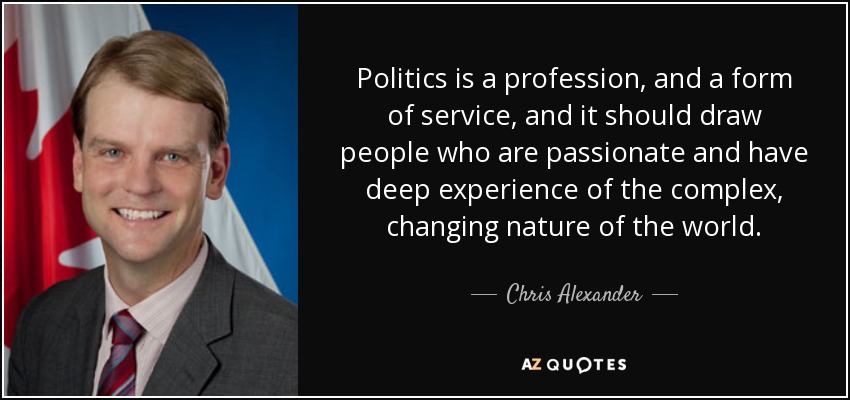Politics is a profession, and a form of service, and it should draw people who are passionate and have deep experience of the complex, changing nature of the world.