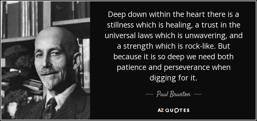 Deep down within the heart there is a stillness which is healing, a trust in the universal laws which is unwavering, and a strength which is rock-like. But because it is so deep we need both patience and perseverance when digging for it.