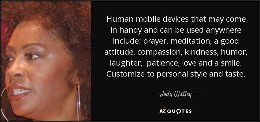 Human mobile devices that may come in handy and can be used anywhere include: prayer, meditation, a good attitude, compassion, kindness, humor, laughter, patience, love and a smile. Customize to personal style and taste.
