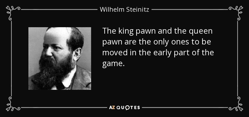 The king pawn and the queen pawn are the only ones to be moved in the early part of the game.