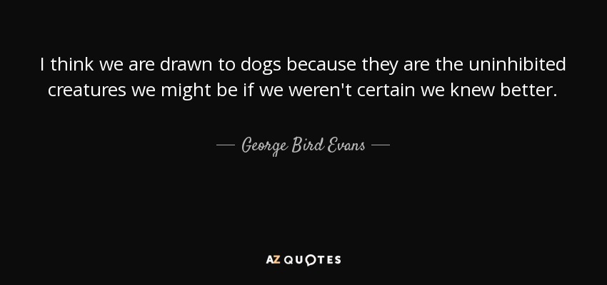 I think we are drawn to dogs because they are the uninhibited creatures we might be if we weren't certain we knew better.