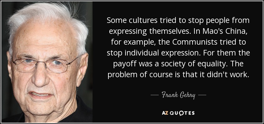 Some cultures tried to stop people from expressing themselves. In Mao's China, for example, the Communists tried to stop individual expression. For them the payoff was a society of equality. The problem of course is that it didn't work.