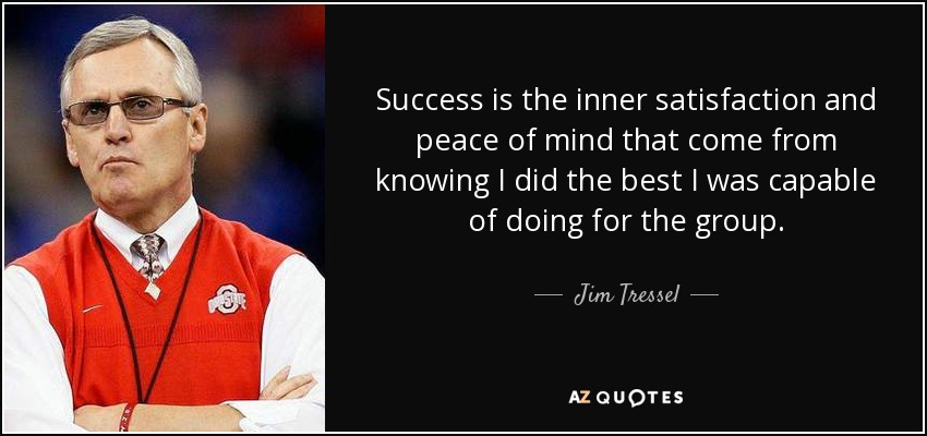 Success is the inner satisfaction and peace of mind that come from knowing I did the best I was capable of doing for the group.