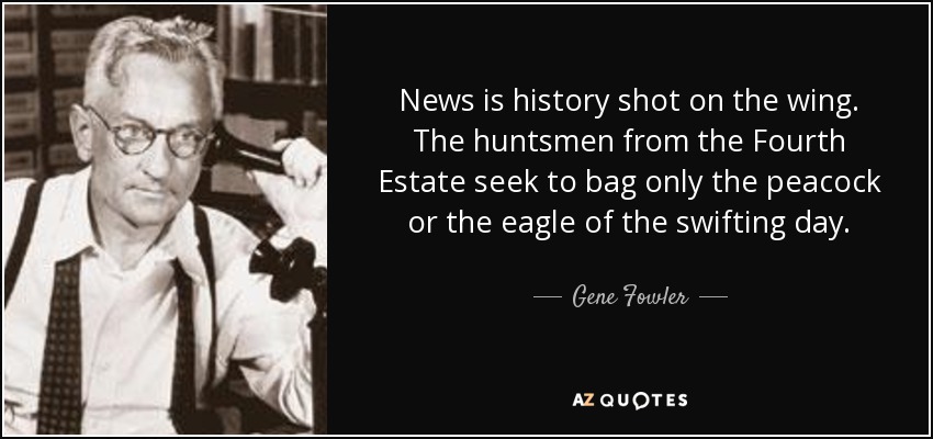 News is history shot on the wing. The huntsmen from the Fourth Estate seek to bag only the peacock or the eagle of the swifting day.
