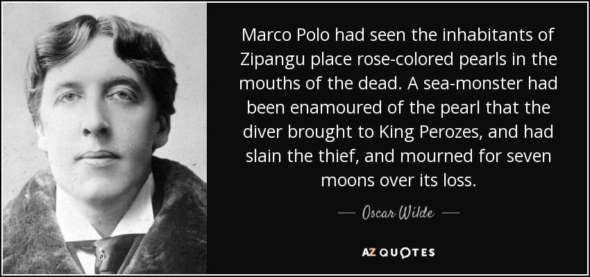 Marco Polo had seen the inhabitants of Zipangu place rose-colored pearls in the mouths of the dead. A sea-monster had been enamoured of the pearl that the diver brought to King Perozes, and had slain the thief, and mourned for seven moons over its loss.