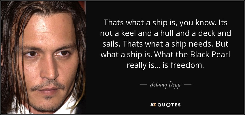 Thats what a ship is, you know. Its not a keel and a hull and a deck and sails. Thats what a ship needs. But what a ship is. What the Black Pearl really is . . . is freedom.