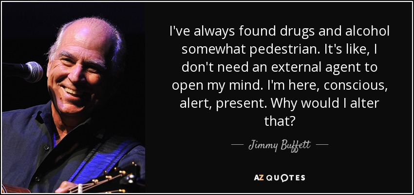 I've always found drugs and alcohol somewhat pedestrian. It's like, I don't need an external agent to open my mind. I'm here, conscious, alert, present. Why would I alter that?