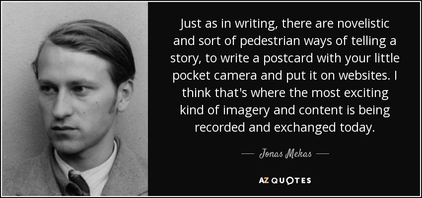 Just as in writing, there are novelistic and sort of pedestrian ways of telling a story, to write a postcard with your little pocket camera and put it on websites. I think that's where the most exciting kind of imagery and content is being recorded and exchanged today.