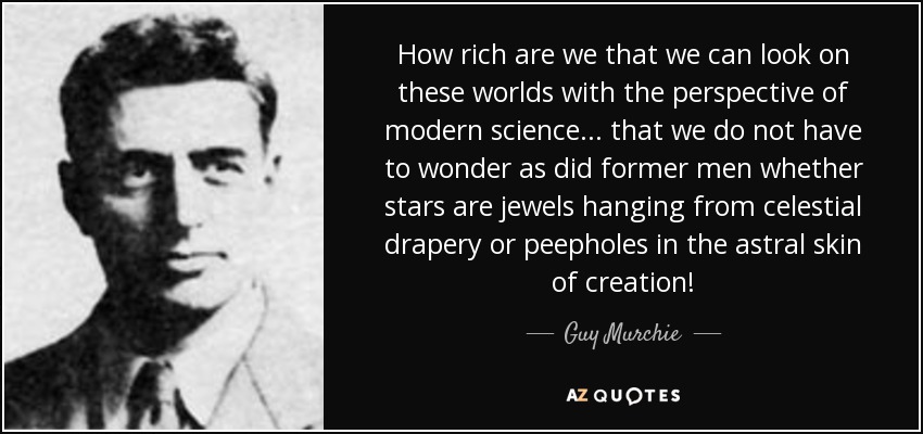 How rich are we that we can look on these worlds with the perspective of modern science ... that we do not have to wonder as did former men whether stars are jewels hanging from celestial drapery or peepholes in the astral skin of creation!