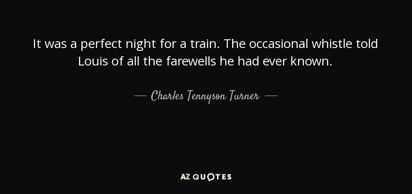 It was a perfect night for a train. The occasional whistle told Louis of all the farewells he had ever known.