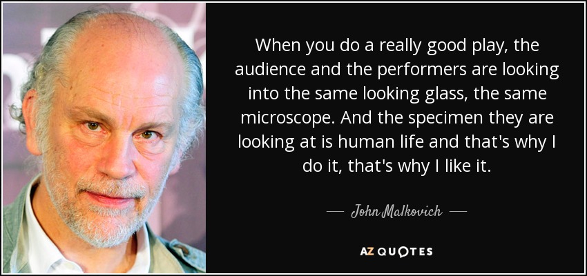 When you do a really good play, the audience and the performers are looking into the same looking glass, the same microscope. And the specimen they are looking at is human life and that's why I do it, that's why I like it.