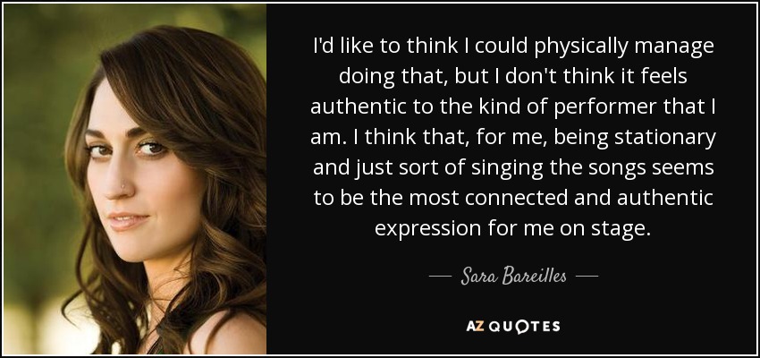 I'd like to think I could physically manage doing that, but I don't think it feels authentic to the kind of performer that I am. I think that, for me, being stationary and just sort of singing the songs seems to be the most connected and authentic expression for me on stage.