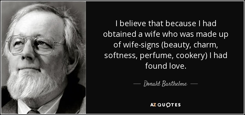 I believe that because I had obtained a wife who was made up of wife-signs (beauty, charm, softness, perfume, cookery) I had found love.