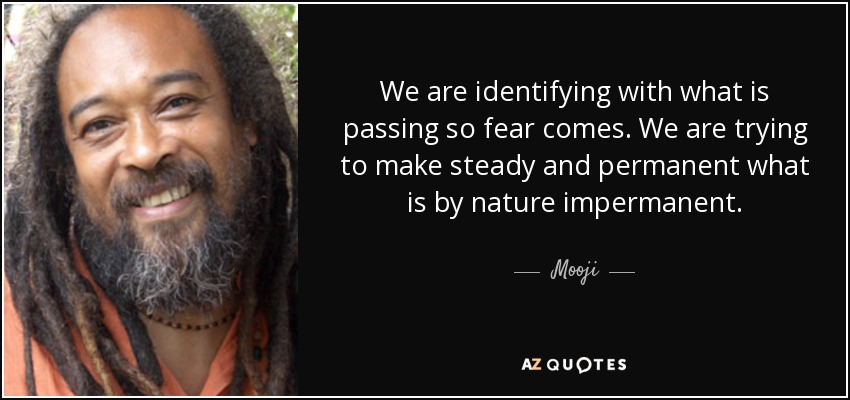 We are identifying with what is passing so fear comes. We are trying to make steady and permanent what is by nature impermanent.