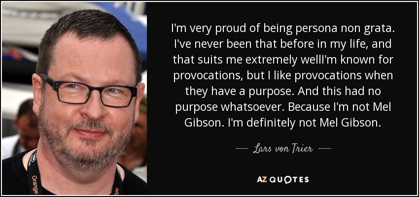 I'm very proud of being persona non grata. I've never been that before in my life, and that suits me extremely wellI'm known for provocations, but I like provocations when they have a purpose. And this had no purpose whatsoever. Because I'm not Mel Gibson. I'm definitely not Mel Gibson.