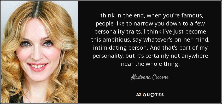 I think in the end, when you're famous, people like to narrow you down to a few personality traits. I think I've just become this ambitious, say-whatever's-on-her-mind, intimidating person. And that's part of my personality, but it's certainly not anywhere near the whole thing.