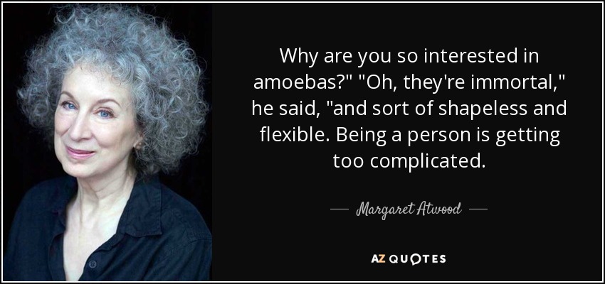 Why are you so interested in amoebas?" "Oh, they're immortal," he said, "and sort of shapeless and flexible. Being a person is getting too complicated.