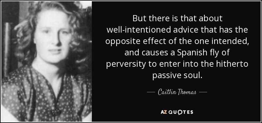 But there is that about well-intentioned advice that has the opposite effect of the one intended, and causes a Spanish fly of perversity to enter into the hitherto passive soul.