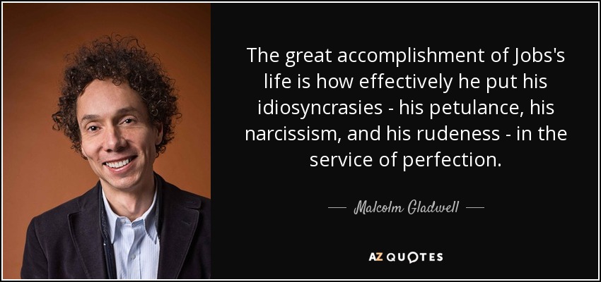 The great accomplishment of Jobs's life is how effectively he put his idiosyncrasies - his petulance, his narcissism, and his rudeness - in the service of perfection.
