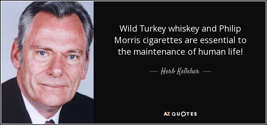 Wild Turkey whiskey and Philip Morris cigarettes are essential to the maintenance of human life!