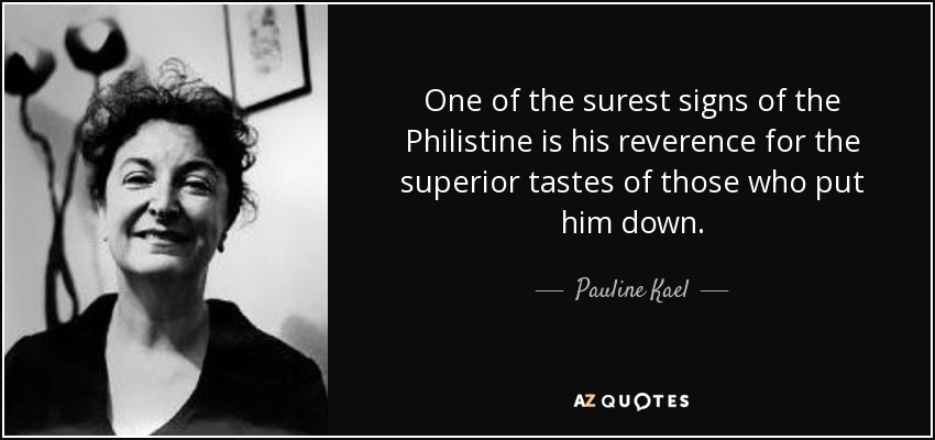 One of the surest signs of the Philistine is his reverence for the superior tastes of those who put him down.