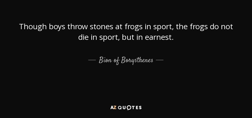 Though boys throw stones at frogs in sport, the frogs do not die in sport, but in earnest.