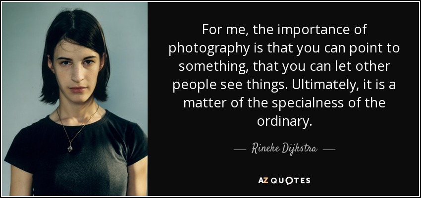 For me, the importance of photography is that you can point to something, that you can let other people see things. Ultimately, it is a matter of the specialness of the ordinary.