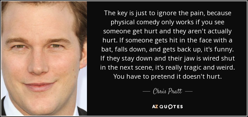 The key is just to ignore the pain, because physical comedy only works if you see someone get hurt and they aren't actually hurt. If someone gets hit in the face with a bat, falls down, and gets back up, it's funny. If they stay down and their jaw is wired shut in the next scene, it's really tragic and weird. You have to pretend it doesn't hurt.