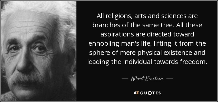 All religions, arts and sciences are branches of the same tree. All these aspirations are directed toward ennobling man's life, lifting it from the sphere of mere physical existence and leading the individual towards freedom.