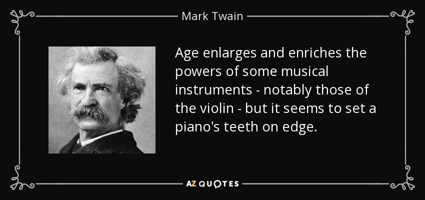 Age enlarges and enriches the powers of some musical instruments - notably those of the violin - but it seems to set a piano's teeth on edge.