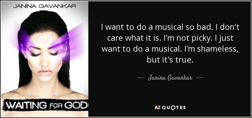 I want to do a musical so bad. I don't care what it is. I'm not picky. I just want to do a musical. I'm shameless, but it's true.