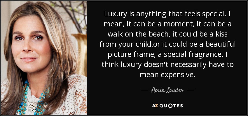 Luxury is anything that feels special. I mean, it can be a moment, it can be a walk on the beach, it could be a kiss from your child,or it could be a beautiful picture frame, a special fragrance. I think luxury doesn't necessarily have to mean expensive.