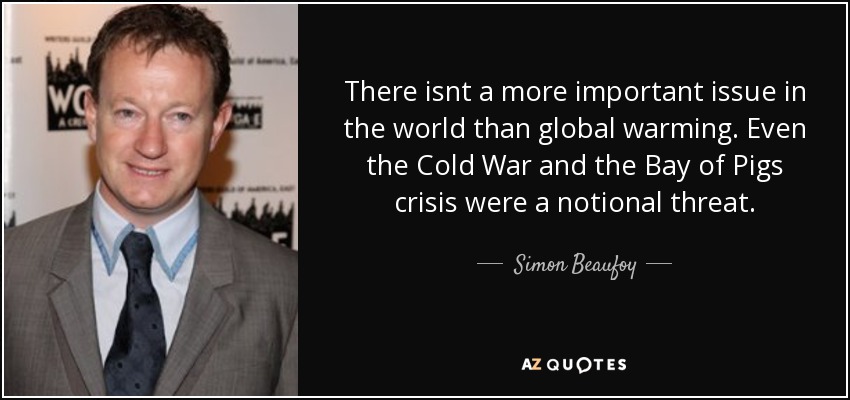 There isnt a more important issue in the world than global warming. Even the Cold War and the Bay of Pigs crisis were a notional threat.