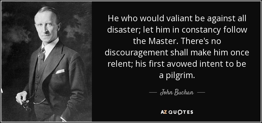 He who would valiant be against all disaster; let him in constancy follow the Master. There's no discouragement shall make him once relent; his first avowed intent to be a pilgrim.