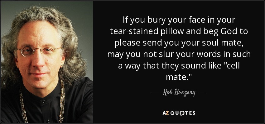If you bury your face in your tear-stained pillow and beg God to please send you your soul mate, may you not slur your words in such a way that they sound like "cell mate."