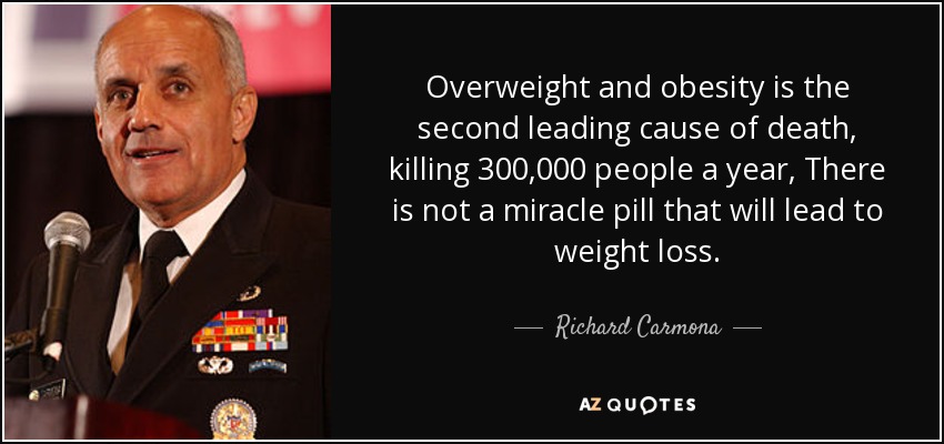 Overweight and obesity is the second leading cause of death, killing 300,000 people a year, There is not a miracle pill that will lead to weight loss.