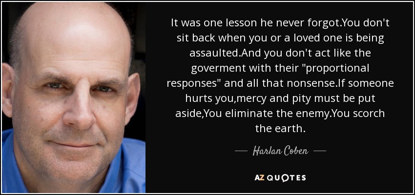 It was one lesson he never forgot.You don't sit back when you or a loved one is being assaulted.And you don't act like the goverment with their "proportional responses" and all that nonsense.If someone hurts you,mercy and pity must be put aside,You eliminate the enemy.You scorch the earth.