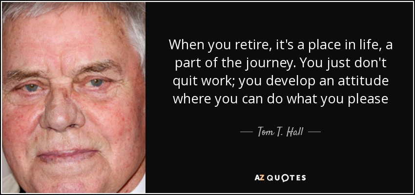 When you retire, it's a place in life, a part of the journey. You just don't quit work; you develop an attitude where you can do what you please