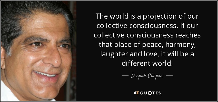 The world is a projection of our collective consciousness. If our collective consciousness reaches that place of peace, harmony, laughter and love, it will be a different world.