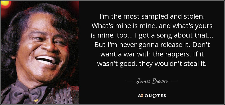 I'm the most sampled and stolen. What's mine is mine, and what's yours is mine, too... I got a song about that... But I'm never gonna release it. Don't want a war with the rappers. If it wasn't good, they wouldn't steal it.