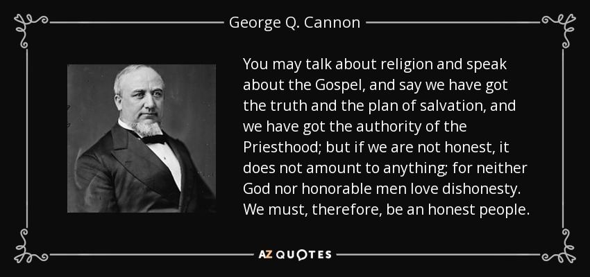 You may talk about religion and speak about the Gospel, and say we have got the truth and the plan of salvation, and we have got the authority of the Priesthood; but if we are not honest, it does not amount to anything; for neither God nor honorable men love dishonesty. We must, therefore, be an honest people.