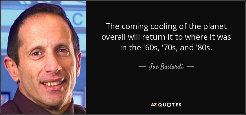 The coming cooling of the planet overall will return it to where it was in the '60s, '70s, and '80s.