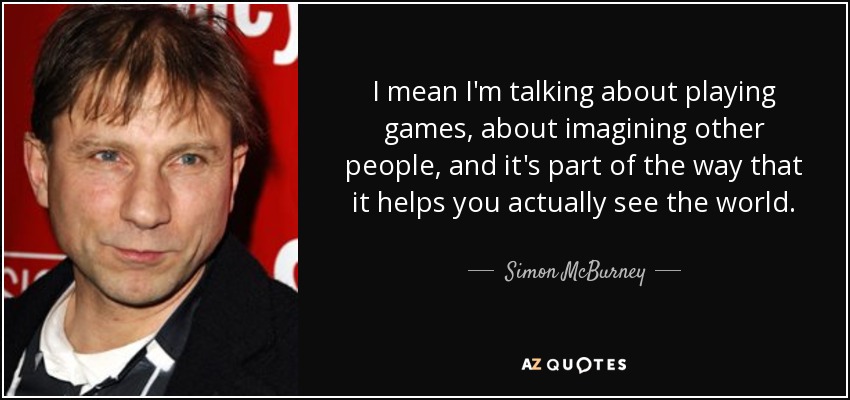 I mean I'm talking about playing games, about imagining other people, and it's part of the way that it helps you actually see the world.