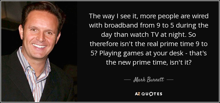 The way I see it, more people are wired with broadband from 9 to 5 during the day than watch TV at night. So therefore isn't the real prime time 9 to 5? Playing games at your desk - that's the new prime time, isn't it?