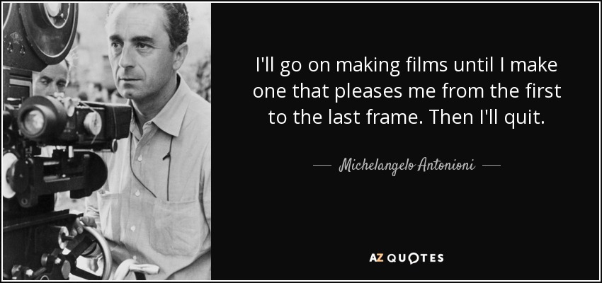 I'll go on making films until I make one that pleases me from the first to the last frame. Then I'll quit.