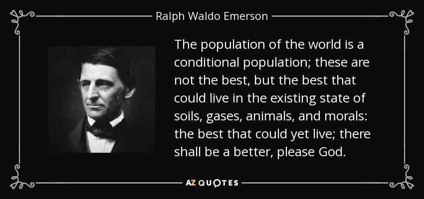 The population of the world is a conditional population; these are not the best, but the best that could live in the existing state of soils, gases, animals, and morals: the best that could yet live; there shall be a better, please God.
