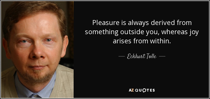 Pleasure is always derived from something outside you, whereas joy arises from within.